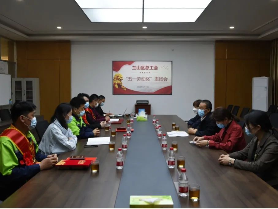 2022年5月11日,蘭山區總工會副主席趙玉啟、李炳娟主任等人到華星機械為在推動高質量發展中發揮了主力軍作用的工業園區的先進集體和個人頒發區工人先鋒號、五一勞動獎章,工業園區魏慧慧,華星機械黨委副書記崔士啟、華星機械工會主席高會芹陪同。